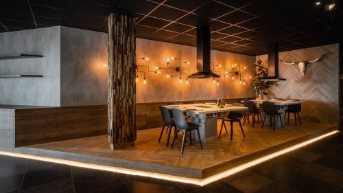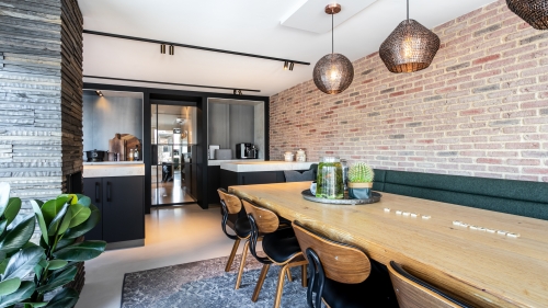 Het ontwerp heeft een industriële uitstraling met een authentiek tintje & robuuste elementen, grillen met elkaar in een stoere en maar sfeervolle omgeving.